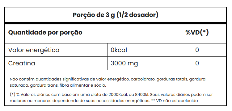 Creatina monohidratada. Não contém Glutén.