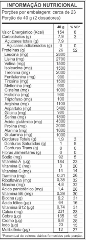 Formulação exclusiva com alta concentração de aminoácidos, especialmente BCAAs, com alto valor biológico.