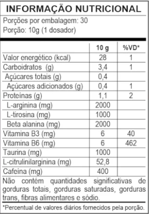 Além disso, você tem foco elevado e vasodilatação intensa. Perfeito para quem busca treinos mais pesados, com energia e pump extraordinários.